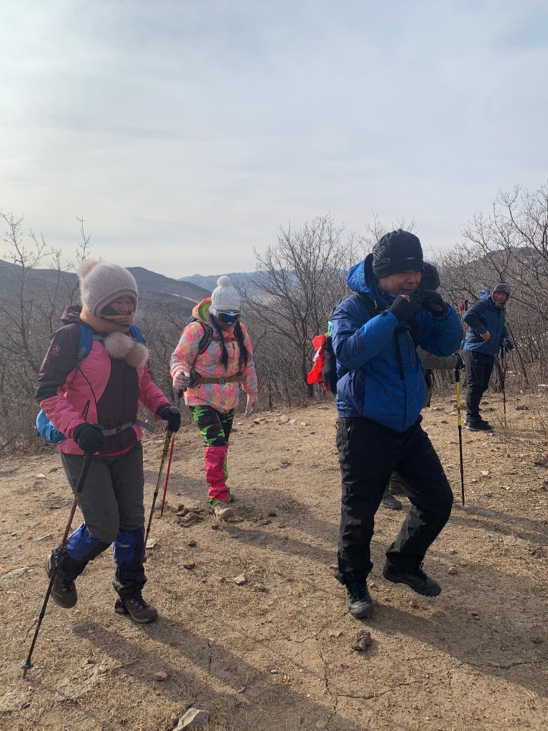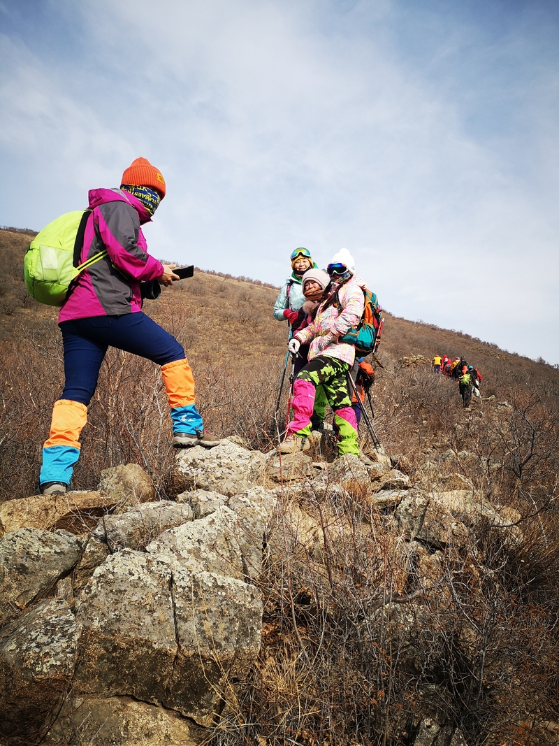 正月初六登山祈福 那年初九的海日罕山祈福因婆婆突犯心脏病而告终。婆婆也因救治及时转危为安。 今天,在这样的季节、这样的天气里去登山是第一次。多年的爬山经验告诉我,山里的温度低于城市,风口的温度低于山里。但还是被今天的风给吓到了,凛冽的寒风似刀般在脸上划过,眼泪顿时就下来了。当看到一棵树孤零零的伫立在荒野中时,想到了三毛的“如果有来生,要做一棵树,站成永恒,没有悲欢的姿势。一半在土里安详,一半在风里飞扬……从不依靠从不寻找”,也想到了被赋予了灵魂的老榆树。 开弓没有回头箭,继续前行。因为海日罕山有别于其他的山,碎石和低矮的灌木丛较多,比较难走,领队们也一再强调不要走的太快,因为气温低如果出汗容易