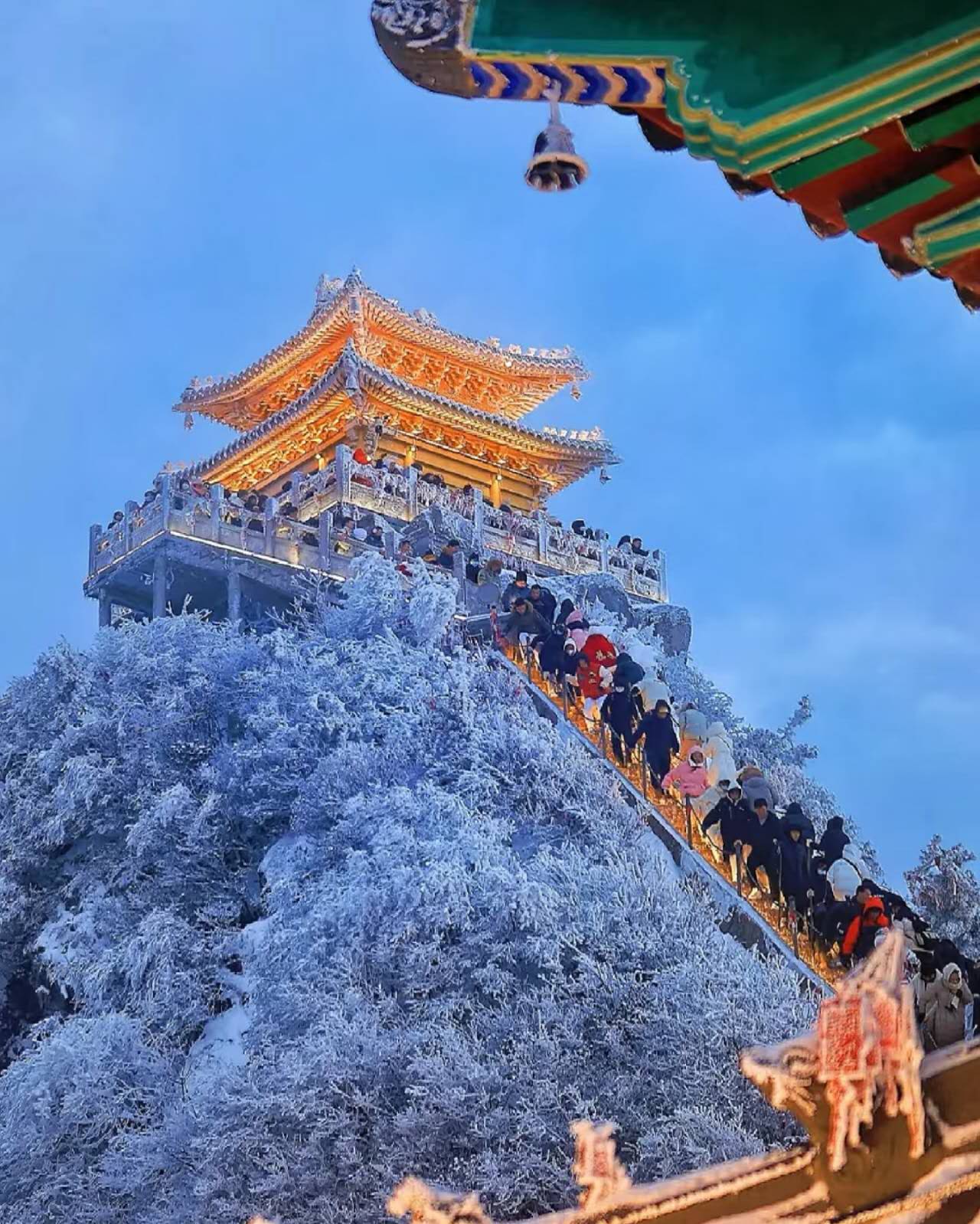 早餐后乘车赴中国最美小城栾川,游览国家5A级景区、网红打卡地、仙境和童话世界【老君山】,老君山景区是中国北方道教信众拜谒圣地,中原山水文化杰出 代表原名景室山,是秦岭余脉八百里伏牛山脉的主峰,西周时期,因“守藏室史”李耳(著名的 “老子”)到此归隐修炼,被道教尊为太上老君,唐太宗赐名为“老君山”,沿袭至今,成为道教 主流全真派圣地。十里画屏是世界规模最大的花岗岩滑脱峰林地貌,十里长的栈道一挪一景,处处是画。金顶道观群走完十里画屏就到达金碧辉煌,大气磅礴的金顶,这里主要参拜、祈福的殿堂。祈求官运、福禄、姻缘都可以。"一山有四季,十里不同天。君山北麓冰未消,伊水之阳花艳艳"。这是老君山的生动写照。国家文物局古建筑专家组组长罗哲文教授赞曰:“天下名山、道教圣地、山景雄奇、生态完美”。世界地质公园评审专家赵逊院士惊叹:“迄今为止世界范围内发现规模最大的花岗岩峰林奇观!”。后赴登封入住酒店