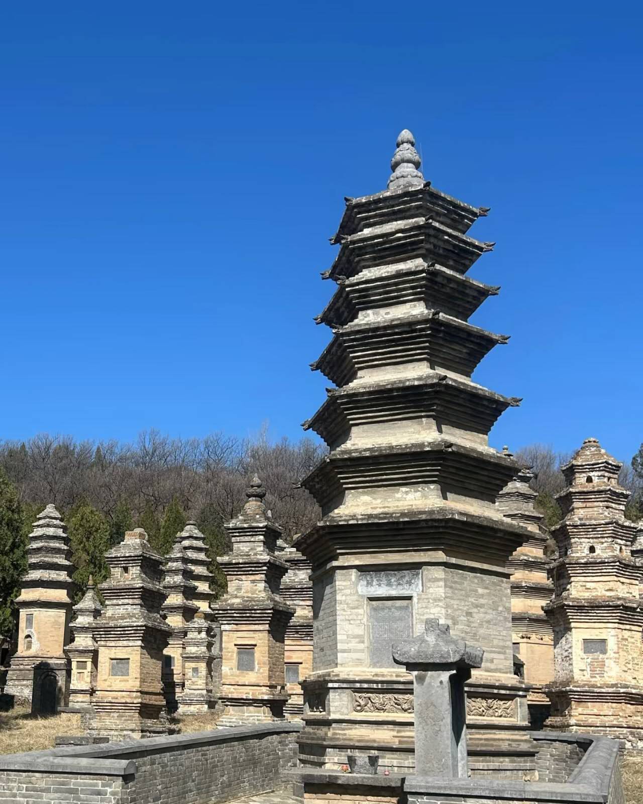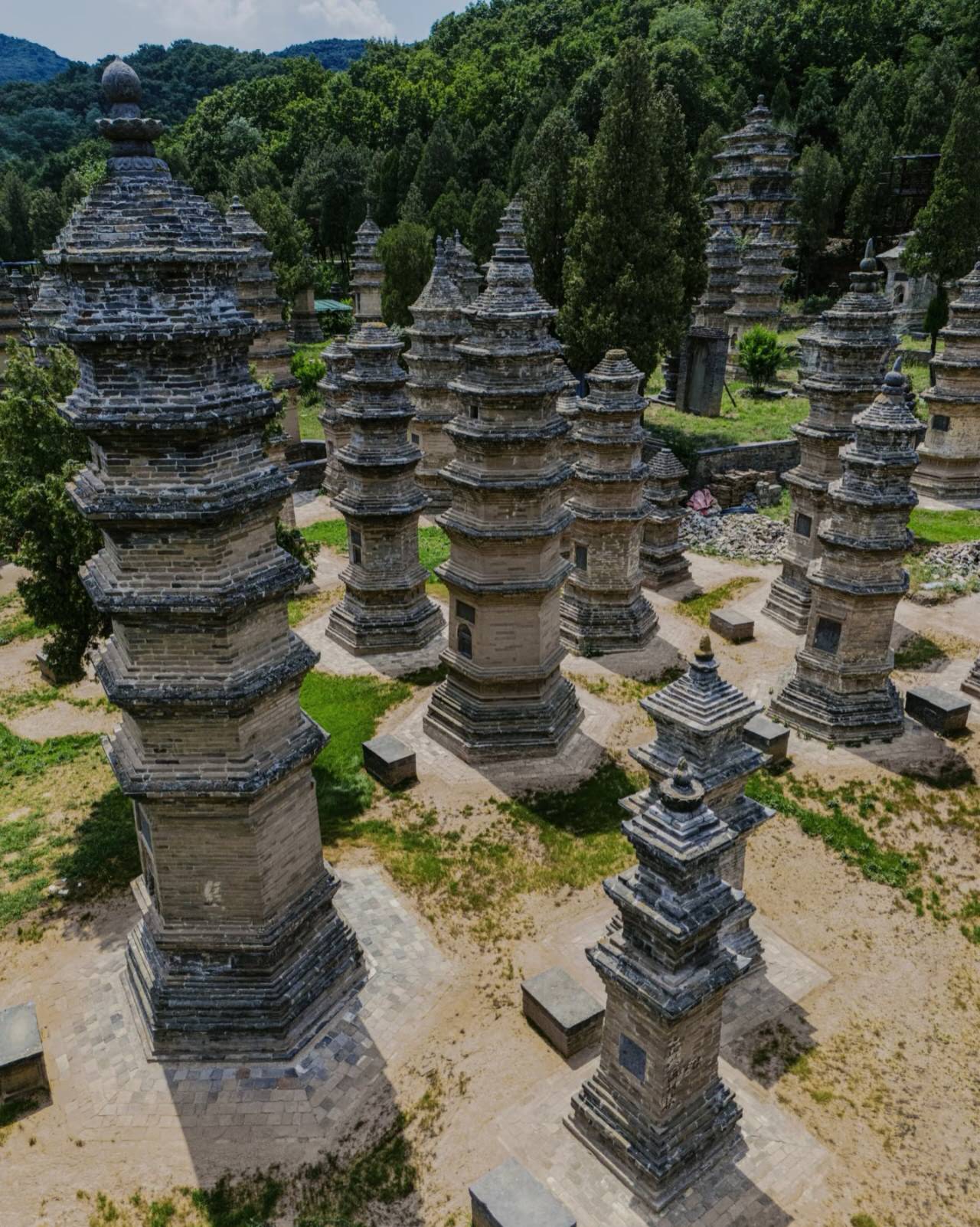 所谓塔林是由一座座佛塔组成,建塔是为了纪念已故的高僧。当大德高僧圆寂后,他们的骨灰或尸骨会被放入地宫,上面造塔。墓塔的高低、大小和层数的多少,表示和尚们生前的佛学造诣深浅、威望高低等。一般为一到七层,也就是人们所说的“七级浮屠”。