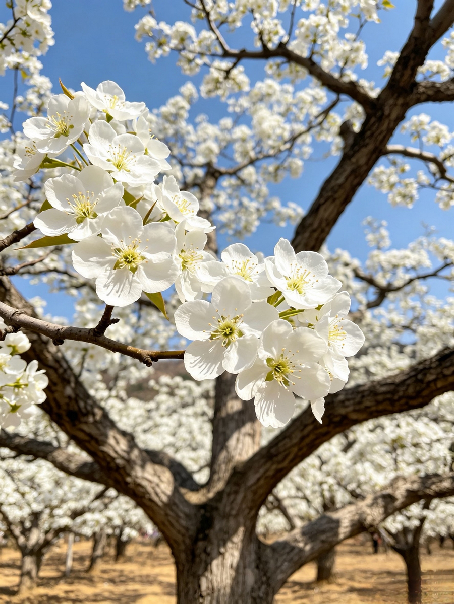 油菜花黄的亮眼,玫瑰红的浪漫,桃花粉的娇艳。唯有梨花,一树一洁白,清冷、素雅。