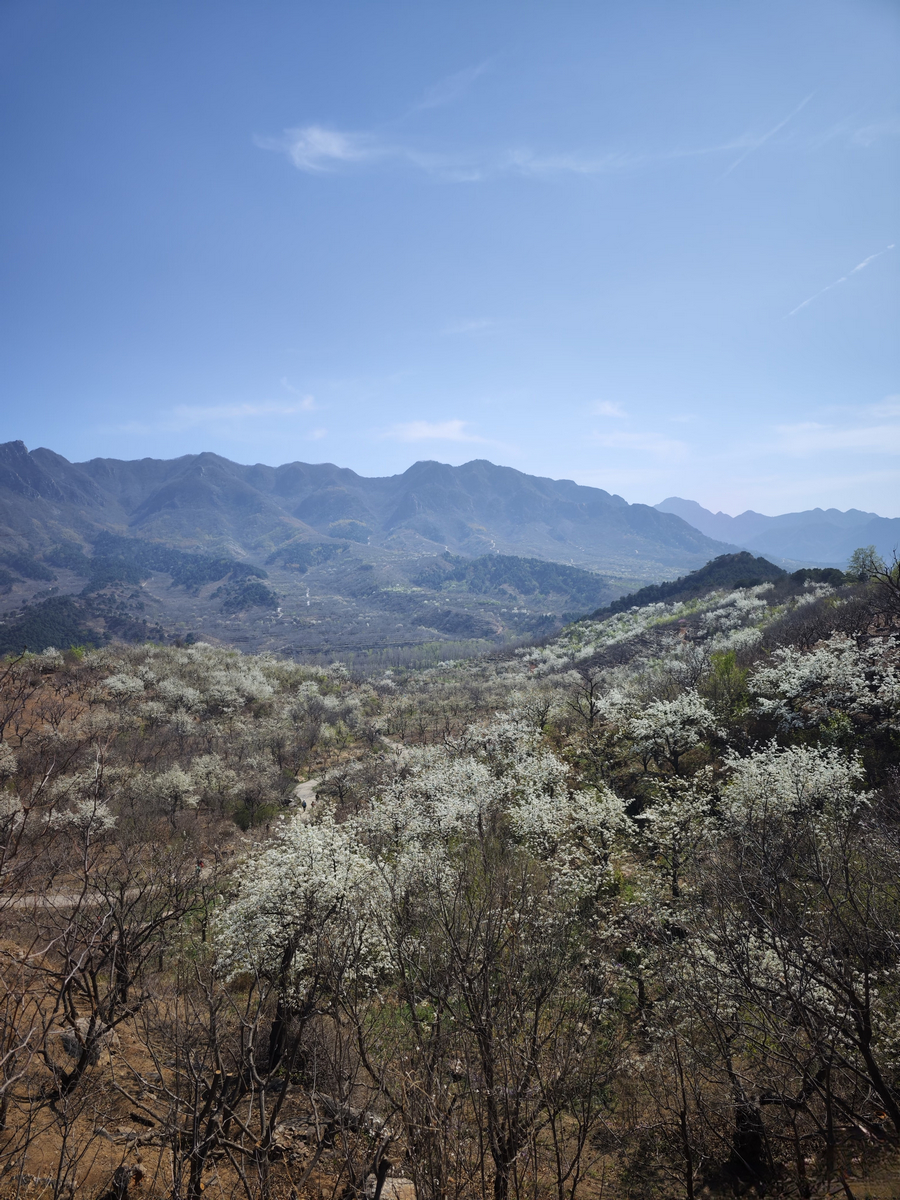 晨光熹微时,我们揣着自备的早餐启程,车上大家相互认识,领队同大家分享户外爬山常识。载着欢声笑语的车辆在春风里颠簸三个半小时,泊进北镇医巫闾山的臂弯。此刻你会看到梨云坠露的满山“春雪”,我们云游在漫山遍野的梨花中,微风徐徐,片片花瓣洋洋洒洒飘落,落在我们发髻、肩膀、手心中,让我们感受到春意盎然。中午找一处幽静之地,拿出我们带的路餐,在这山野中伴着美食一同吸取大地山川之灵气。约下午15点徒步爬山到终点,我们踏上回家的路,车上我们互相交换照片,分享出行感受,在晚20:00左右到达温馨的家。